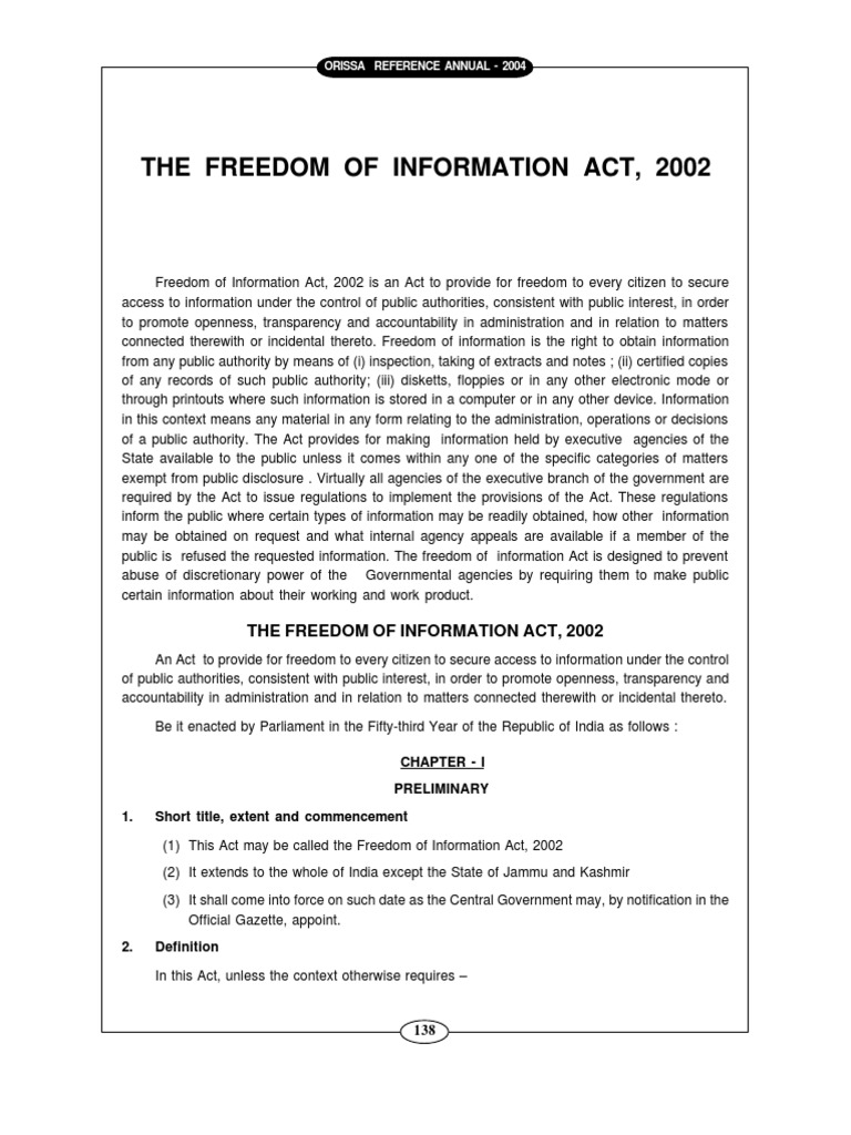 552, as amended), generally provides any person with the statutory right, enforceable in court, to obtain access to government information in executive branch agency records. Il freedom of information act (foia), legge sulla libertà di informazione, è una legge sulla libertà di informazione, emanata negli stati uniti d'america il 4 luglio 1966 durante il mandato del presidente lyndon b. This right to access is limited when such information is protected from. • the foia also requires agencies to proactively post online certain categories of information, including frequently requested records. Below is a background of the developments since 2005.
