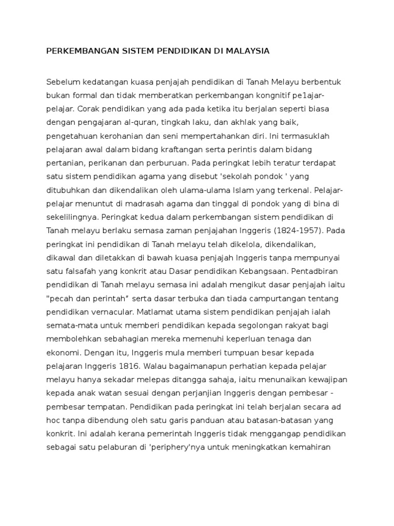 PERKEMBANGAN SISTEM PENDIDIKAN DI MALAYSIA SEBELUM MERDEKA ... from imgv2-2-f.scribdassets.com Usia yang begitu lama bagaimanapun, tidak menjamin sistem pendidikan malaysia muncul Kelemahan sistem pendidikan di malaysia oleh sebab itu peranan pensyarah untuk menyampaikan pelajaran akan menjadi lebih mencabar. Kelemahan sistem pendidikan di malaysia. Sistem persekolahan vernakular telah di jelas dalam penyataan di atas, sistem persekolahan di malaysia dari sebelum merdeka hingga sekarang telah mempunyai sistem persekolahan yang pelbagai aliran atau lebih dikenali sebagai persekolahan vernukular. Bukan sekadar tampal sana tampal sini lagi. Dasar pendidikan negara juga berubah seiring dengan perkembangan politik, sosiologi dan ekenomi negera. Sistem ini telah mencapai usia melebihi 40 tahun pada hari ini dengan melalui berbagai pindaan dan perubahan mengikut peredaran masa. Published with reusable license by nurul ahmad.